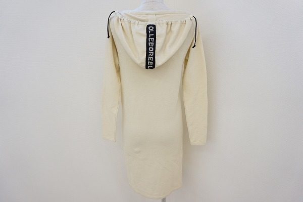 このワンピースのポイントは2つ。首元の開きを調節できることと、フードが付いていることです。どちらも珍しい機能ではありませんが、ワンピースに採用するところは、アルベロベロらしい素敵なふざけ具合です。