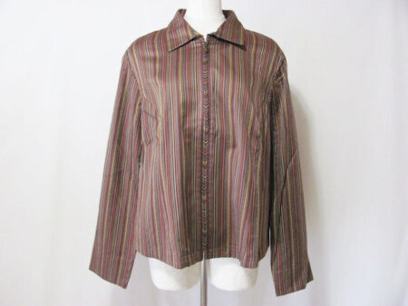 艶のある感じ、繊細なストライプと濃いめのブラウンの組み合わせが素敵な女性に仕上げてくれるレリアンのジャケット。出張買取ご利用のお客様より買取しました。大人の魅力を出すには最適なアイテムです。芯のある女性のカッコよさと強さを引き出してくれます。