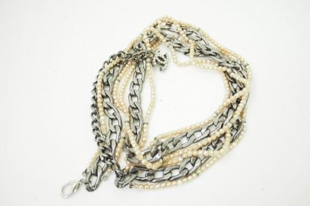 上品な輝きをたたえるパールとちょっとアバンギャルドな雰囲気が漂うチェーンの組み合わせが斬新なデザインです。