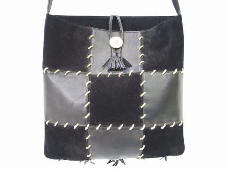 スエードとレザー素材をパッチワーク風に組み合わせ、オシャレなステッチで印象的なバッグです。