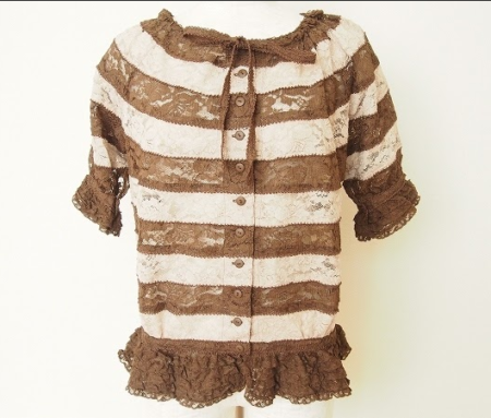 今シーズン人気ラテカラーの太目ボーダーにフリルやレース、リボンがフェミニンな雰囲気!そして保管状態が良い美品なので古着に抵抗のある方にも是非とも見て頂きたいお品物。段々と暖かさを感じられるこの時期に迎え入れたいアイテムです。