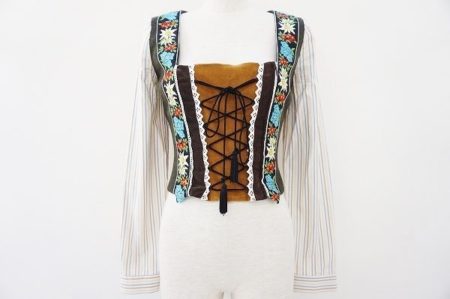 体にしっかりフィットするビスチェとシャツをドッキングした、ユニークで可愛いデザインのお洋服です。