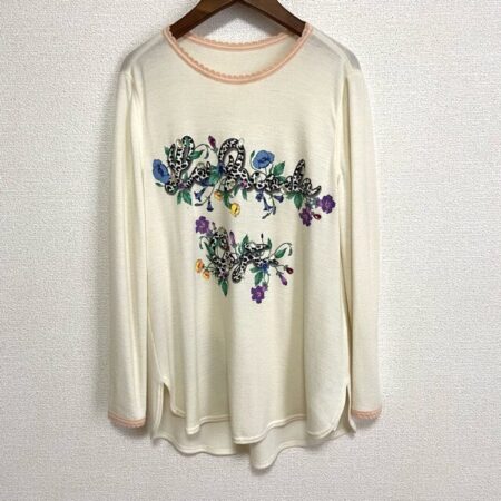 人気ブランド、伊太利屋のチュニックを買取しました。買取のご利用方法は出張買取です。安定感のあるクリーム色に煌びやかで綺麗なビジューがよく合っています。インナーにも使用しやすいタイプアイテムです。