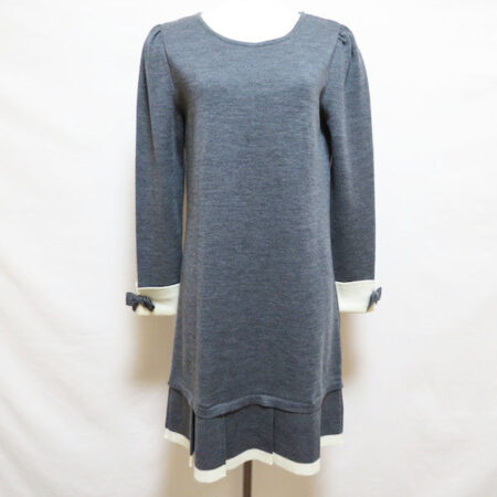 出張買取ご利用のお客様よりエムズグレイシーのワンピースを買取しました。サイズは40です。落ち着いたグレーに小さめのリボンが素敵。きっちりと存在感を出してくれます。パールのネックレスをしたり、ロングブーツをしてみたりと華やかな小物を楽しでいただくのもおすすめです。
