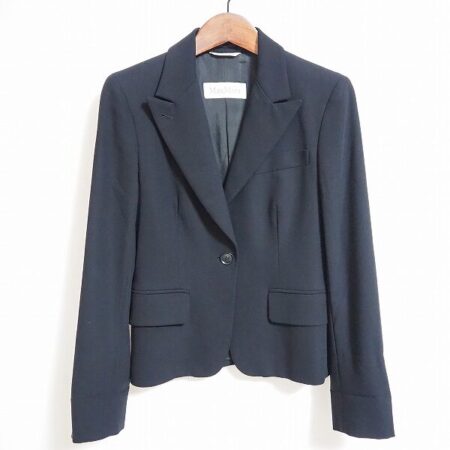 マックスマーラのジャケットを出張買取ご利用のお客様より買取しました。サイズは36です。ビジネスラインに多い黒ですが、それだけでない魅力が詰まったかっこいい1点。柄のトップスにも対応できそうです。