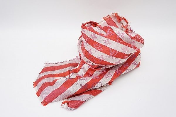 今回入荷したのは、人気を博したレイユールラインのショールです。ルイ・ヴィトンのショールの中では、ポップなシリーズになります。