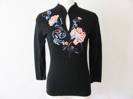 出張買取ご利用のお客様よりヴィヴィアンタムのカットソーを買取しました。個性豊かなデザイン、色味が特長的なヴィヴィアンタムのお洋服。今回ご紹介するのはチャイナ風が可愛いカットソーです。インパクトのある刺繍がクールな黒に負けていません。落ち着きを出しつつも女性らしい華やかさもアピールできる嬉しいカットソーです。