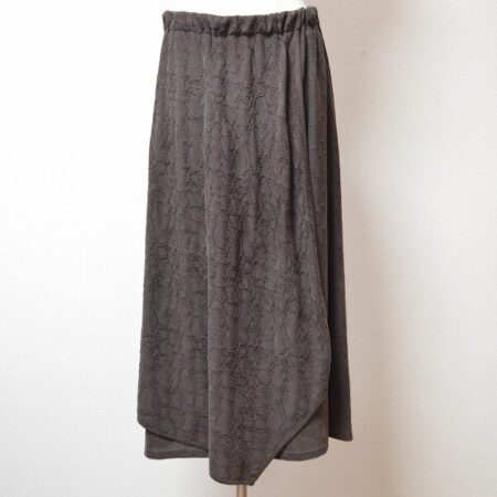 女性らしさを盛大に引き出してくれるエイココンドウ。お客様よりスカートを買取しました。上品なブラウン、クシュっとした素材感とラップスカート風のデザインが温和な女性に仕上げます。アースカラーのブラウンでコーデの時に合わせる色味も選ばない優れものです。足を出したくない方にオススメな丈感のアイテムです。