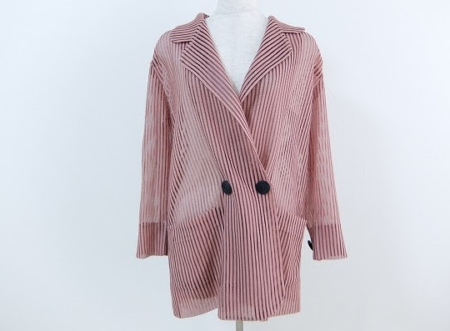 今シーズンは透け感のあるアイテムが人気を集めていますが大人女性には全体的に透け感があると抵抗もある方もいるでしょうか。そんな方にピッタリなピンクストライプ柄のほど良い透け感のこちらの様なジャケットなら羽織りやすいのではと思います。ブランドは斎藤都代子の物ですので着心地や素材の良さは折り紙付き!ストライプ柄でしたら流行り廃りが無く長く活躍してくれます。