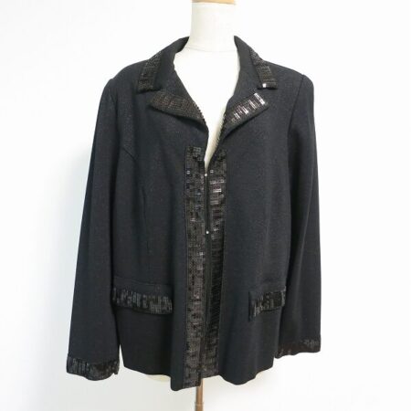 スティゾーリの黒ジャケットを出張買取ご利用のお客様より買取しました。48サイズのアイテムです。強さを感じるブラックベースですが、スパンコールが丁度よく効いており丁度よく華やかになります。激しい絵柄や色合いは避けたい方にもおすすめしたい1着です。