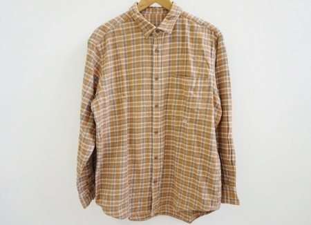 パパスからタウン着としても使いやすいブラウンのチェック柄の長袖フランネルシャツをお客様からお譲り頂きました。Mサイズなので男性は勿論ですがトレンドのオーバーサイズを楽しみたい女性にもお勧めの1枚です。スリーシーズン長く毎年着られるデザインは男女ともに重宝するデザイン。大人のリラックスカジュアルなこちらのシャツはボトムスの色も選ばずコーデし易いのも欲しくなるポイントですね。