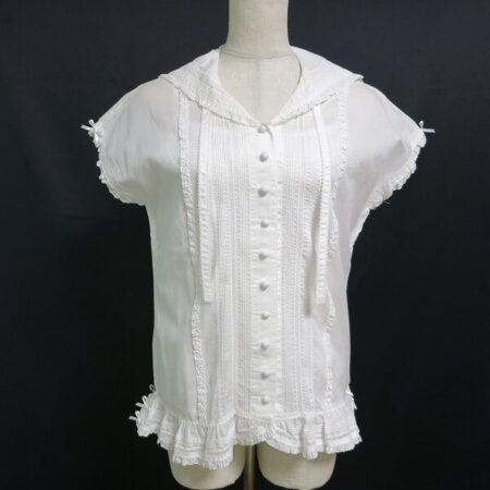 出張買取でピンクハウスのシャツを買取しました。白のシンプルなシャツかと思いきや、フリルもレースもしっかり詰まった女性歓喜の1着。白の統一感が何とも言えません。