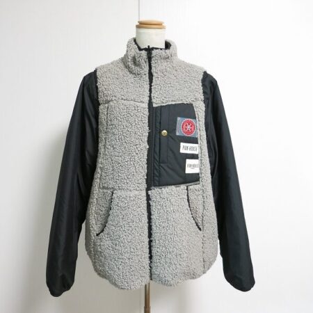 リバーシブル仕様のピンクハウスのブルゾン。出張買取にて買取しました。落ち着いたグレーと黒の色合い、メンズアイテムのようなシャープさがレアなピンクハウスのアウターです。可愛らしいアイテムが多いピンクハウスのお洋服とも積極的に使っていただけるのではないかと思います。