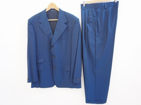 今回買取させて頂きましたのは男性からも女性からも愛されているジャンニヴェルサーチのお品物。紺地の上質な生地が爽やかで軽やかな印象の1着です。スーツと言うと重い色味が多い中、こちらの紺は爽やかな色味でフレッシュさを忘れない大人男性に演出してくれます。無地のデザインなのでシャツやネクタイに柄物を合わせても素敵になるかと思います。仕事用にただ着るだけでなくお洒落を楽しみながら長く愛用出来るお品物です。