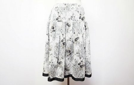 イクコのスカートを出張買取にて買取しました。モノクロ×華やかさが大人な雰囲気を演出してくれる嬉しい1枚です。どこかエレガントに仕上げてくれます。ホワイト×ブラックというシンプルさがどんなトップスでも引き立ててくれるのがポイント。ダークなカラーからポップな色合いまで幅広い組み合わせを楽しめますね。