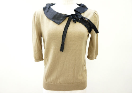 ワントーンコーデやラテコーデがブームになりベージュのアイテムをお買い求めの中には色味的に何と無く地味・無難なコーデになってしまい難しく感じる事も。そんな時にコーディネートのアクセントになってくれそうなベージュのカットソーを御客様よりお譲り頂きました。ブランドはフィロソフィー、サイズは38!ベージュの無地にブラックのリボンにアシンメトリーな襟、程よく空いたラウンドネックが上品な雰囲気と大人女性らしい肌見せをしてくれます。