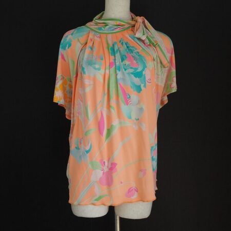 レオナールのカットソーを出張買取ご利用のお客様より買取しました。レオナールならではの綺麗さが目立つカットソー。オレンジ×水色×ピンクの珍しい組み合わせにもグッと惹かれます。決して強すぎないバランスもいいですね。