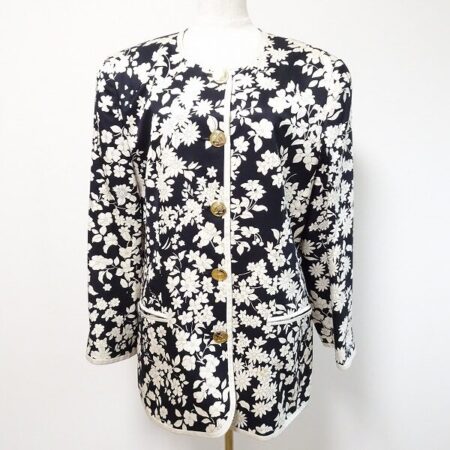 レオナールのジャケットを出張買取にて買取しました。ピリッとした雰囲気がありつつも、柔らかめのお花で穏やかさも出していただけます。ノーカラーならではの優しい雰囲気も感じさせてくれます。