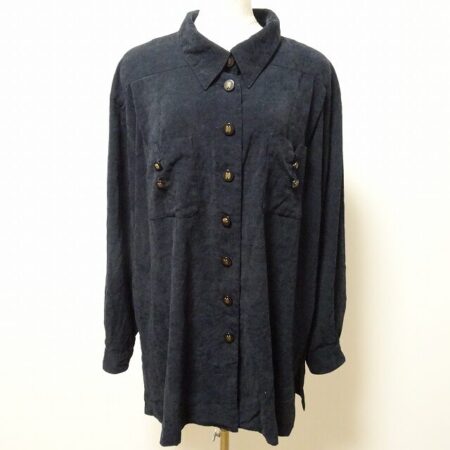 カジュアル過ぎない黒ブラウス。レリアンのアイテムを出張買取にて買取しました。スエード調でシックです。長さもまあまああるので、ちょっと余裕を持ってきたい方にもおすすめ。柄物のボトムスも合わせていただけるのではないでしょうか。
