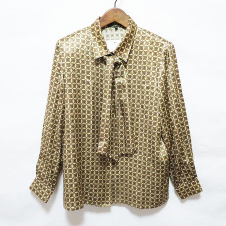 出張買取ご利用のお客様よりレリアンのブラウスを買取しました。シルク素材でベージュと茶色がいい具合にマッチした柄のブラウス。少しゴージャスに行きたい時にもおすすめです。