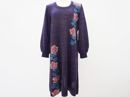 ニットで有名で幅広い世代の方に人気のサイトウトヨコ。トレンドにとらわれれず毎年愛用出来るアイテムが揃っているのも不動の人気を長年集める秘訣でしょうか。上質なニット生地はプチプラのニットよりも毛玉が出来にくく手間も最小限に抑えられるとサイトウトヨコのアイテムは常にアクイールで人気を博しています。アシンメトリーな縦のラインの薔薇柄はIラインを作り出してスタイル良く見せてくれ視線を散らすので体型が気になりにくくカバーしてくれる優秀アイテム。