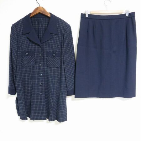かわったデザインのスカートスーツが入ってまいりました。出張買取にて買取したチェックのお品、ブランドはレリアンです。上部が長めなので様々なコーディネート候補が出てきます。ジャンル問わず合わせていただけるシンプルさですね。
