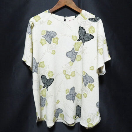 真夏にも大活躍しそうな詩仙堂のカットソーを買取しました。どこかしっとり決まる蝶柄。とはいえアイボリーベースなので爽やかさもしっかりあり凛とした雰囲気も感じられます。