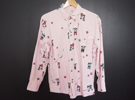 男性でも着易い柔らかなピンクに可愛らしいクマ柄がコーデのアクセントになるデザインです。