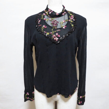 出張買取ご利用のお客様よりノンノンドールのカットソーを買取しました。黒ならではの色っぽさ、くどすぎない花柄がマッチしたカットソーです。落ち着いた大人女性を出してくれます。二重仕立てで軽さがあるのも魅力です。