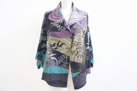 詩仙堂のジャケットを出張買取にて買取しました。吸い込まれてしまいそうな、世界観が特長のジャケットです。さまざまなお色味が使われていますので、ボトムスも選びやすいのが嬉しいですね。前を開けて着ていただいてもよし。ボタンを留めてもよし。さまざまな着方を楽しんでいただけます。