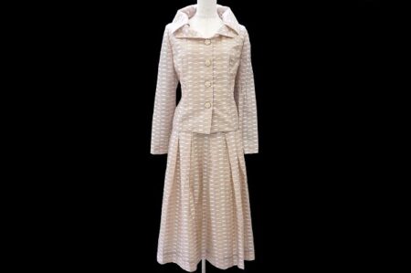 ラフェスタシック ラピーヌ スカートスーツを出張買取ご利用のお客様より買取しました。品格のよさはもちろん、少女のような可憐さも兼ね備えしっかりとした存在感もある贅沢なスカートスーツです。素材もシルク混で気分もアップ。着ているだけで見る人を惹きつけてしまいますね。