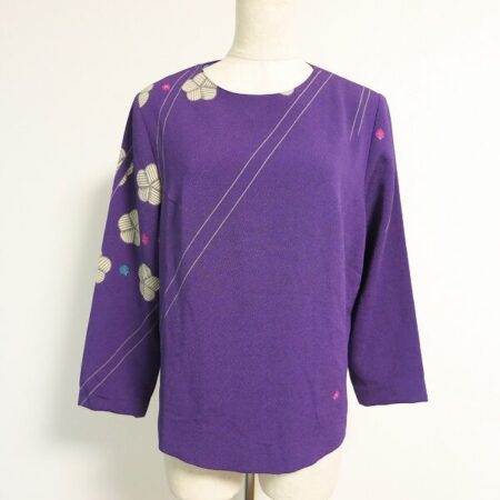 宅配買取にて詩仙堂のカットソーを買取しました。上品な紫と所々から覗くお花が可愛いちりめん素材のトップスです。着物の様な雰囲気を感じます。