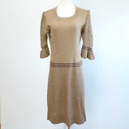 出張買取で斉藤都世子のワンピースを買取しました。綺麗なラインが際立つワンピースです。ニット特有の広がりも抑えられ、冬場でも安心して着ていただけそうです。お袖やスカートもフリルで可愛いです。