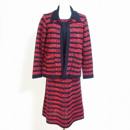 出張買取で斉藤都世子のワンピーススーツを買取しました。紺と赤の組み合わせが明るさを保ちつつ、大人の輝きを加えてくれる1点です。ニットということを忘れさせてくれるカッコよさですね。