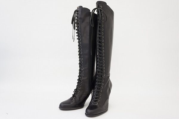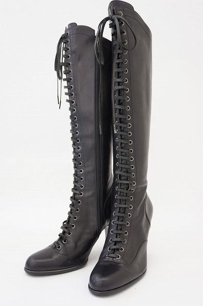 今回ご紹介させていただくのは、エポカのロングブーツです。細かな編み上げのデザインがとってもオシャレなお品物となっています。ミニスカートやデニムなどにも合わせやすいので、コーディネートの幅が広がることは間違いないでしょう。