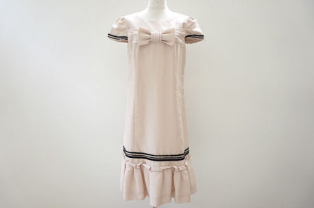 トゥービーシックのワンピース・サイズ42を出張買取にて買取しました。真ん中にあるリボンがポイント!柔らかく清楚な印象にしてくれるワンピースです。ぼやけた印象にもなりがちなベージュですが、所々にブラックラインがあるためほどよく締まりスッキリした印象に。お出かけに最適な1枚です。