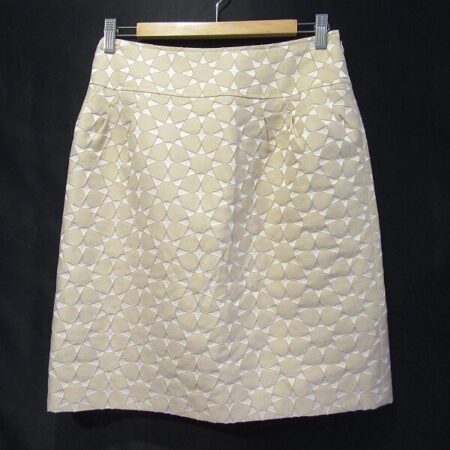 コンパクトなデザインでシンプルに決まるレリアンのスカート。出張買取にて買取しました。サイズは11号です。ベージュと白主体ですので主張も強すぎず、こなれたおしゃれを楽しんでいただけます。柄のようなそうでない風合いも特徴。