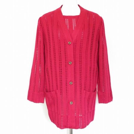 顔色もぐんとよくなりそうな色味が素敵な斉藤都世子のアンサンブル。店頭預り買取にて買取しました!見ている側も明るくなるような赤に小ぶりな薔薇ボタンが優しく映えた1枚です。モノトーン調のお洋服に合わせてもいいですね。