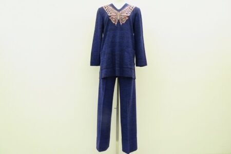 斉藤都世子のセットアップを出張買取ご利用のお客様より買取しました。斉藤都世子の特徴ともいえる蝶のモチーフに心惹かれるアイテムです。艶やかで品のある蝶のモチーフがさりげなく目立ちます。パンツスタイルなのでカッコよさも程よく出してくれるのがいいですね。上からジャケットを着ていただくのもおすすめです。