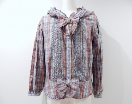 ガーリーで大人でも可愛いを演出してくれるアイテムが多く人気のピンクハウスらしいブラウスを買取査定させていただきました。今シーズン人気のくすみカラーの落ち着いた赤と水色のチェック柄は流行り廃りがなく毎年着たい時に着れる優秀デザイン!そして大き目リボンとフリルが春夏は1枚で着ても可愛らしく秋冬はシンプルなアイテムと重ね着してもコーディネートのアクセントになってくれる素敵アイテム。