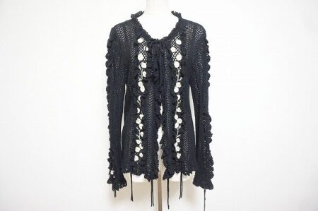 大人な黒に透かし編みがマッチしたピンクハウスのカーディガンを買取しました。出張買取ご利用のお客様のお品です。大人になってもファッションを通じて夢や希望を与えてくれるピンクハウス。花モチーフがゴージャスで大人な印象にしてくれます。首元もほどよく開いているのですっきりと見せてくれるのも嬉しい1着ではないでしょうか。