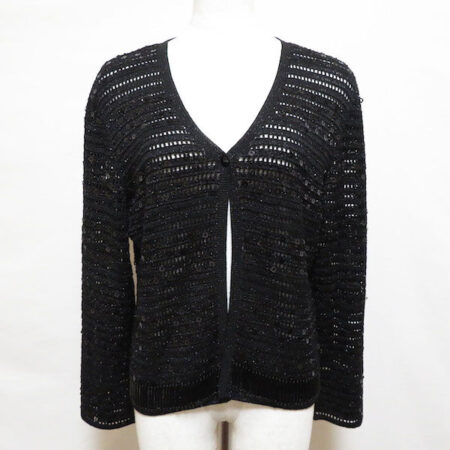店頭預り買取ご利用のお客様よりカーディガンを買取しました。ブランドは人気のレオナール。印象的なプリントのお洋服が人気ですが今回は少し雰囲気の違う黒のワントーンニットカーディガンです。黒一色ですがシルク、ビーズ、ラメなど華やかさも織り込まれているので顔映りを上品に仕上げてくれます。カジュアルになりがちなアイテム、カーディガンですが透け感があることで気立の良さを加えますね。