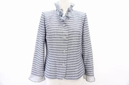 レリアンのジャケット・サイズ9号を宅配買取にて買取しました。お仕事にも!プライベートにも様々なシーンで活躍しそうなジャケットです。首元のフリルがなんとも可憐で素敵な印象に仕上げてくれます。グレー×シフォンの組み合わせで柔らかさもゲット。いろんなカラーのインナーとも合わせやすい万能アイテムです。
