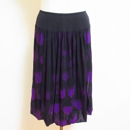 出張買取においてヴィヴィアンタムのスカートを買取しました。黒のかっこよさに上乗せして紫の美しさが光る1点。花柄などの可愛らしい柄ではなく華やかさを出したいという方におすすめしたい1着です。