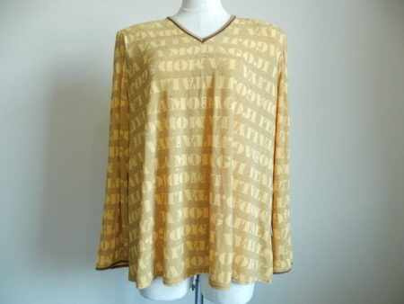 適度に鮮やかな黄色がエレガントな伊太利屋のカットソーを出張買取にてお譲りいただきました。当店でも人気の高いブランド『伊太利屋』のシックなロゴがポイントのカットソーです。ほんのりVネックであることで女性の繊細さを出してくれます。ミセス層からシニア層まで幅広い世代に着ていただける嬉しい1枚ではないでしょうか。