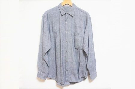 先日買い取り査定させていただいた淡いグレーの長袖シャツは、よく見ると繊細な素材のニュアンスを楽しむことができるお品物です。