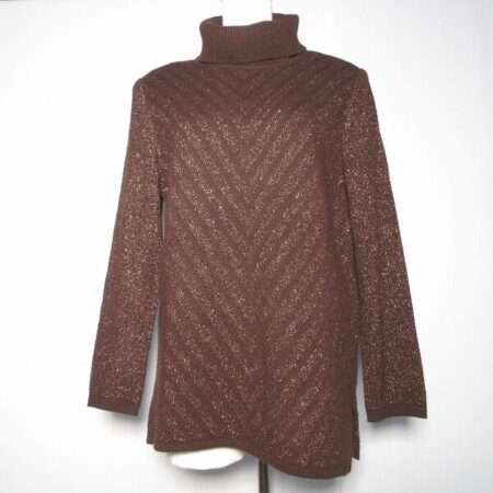 9号サイズのレリアンのニット。出張買取ご利用のお客様より買取しました。明るめの茶色とラメの組み合わせなので煌びやかさ過ぎずにおしゃれを楽しんでいただけます。タートルネックがしっかりしているのも嬉しいポイントですね。