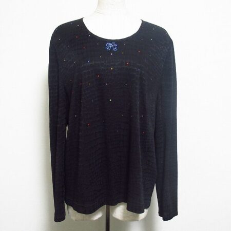 伊太利屋のカットソーを出張買取ご利用のお客様より買取しました。持っていると何かと役に立つ黒色のカットソー。程よくラメが効いており上品さを与えてくれます。目立ちすぎずさりげないのが大人な感じですね。