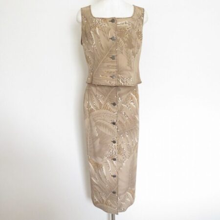 出張買取ご利用のお客様より伊太利屋のセットアップを買取しました。ベージュの愛らしさと落ち着きがセレブでありつつ可愛らしさも出していただける1点かと思います。ワンピースっぽく着ていただくのもオススメ。