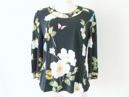 大ぶりの花柄に、襟元のラインストーンつきのディティールが素敵なカットソーをお譲りいただきました。